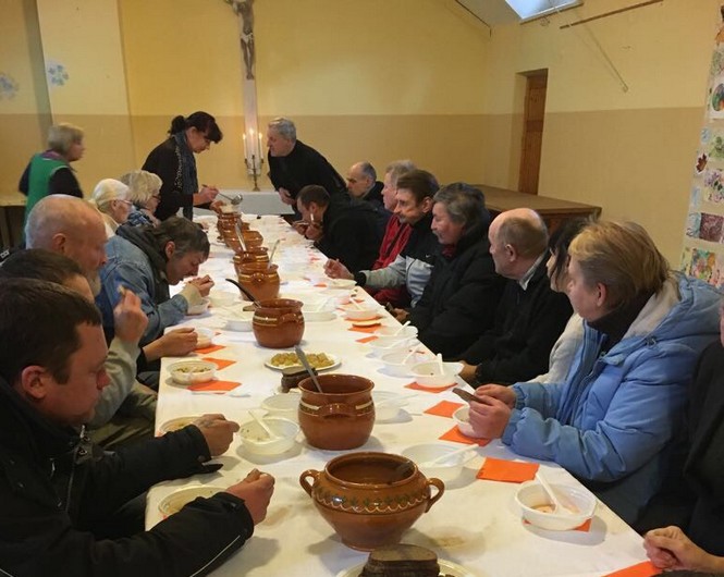 12 val. šv. Mišiose kun. Rimantas Kaunietis meldėsi už vargstančius, skurstančius ir nepriteklių išgyvenančius parapijiečius. Po šv. Mišių vargstantieji buvo pakviesti į parapijos salę pietų.